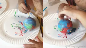 2. Let your kids freely express their creativity with colors on the ornament using a paintbrush or foam brush. You can also use cotton balls & kitchen scrub pad for more effects.